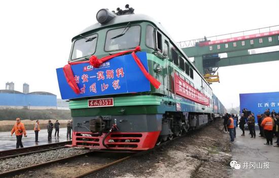 12月26日,我市在吉安火車站南站舉行“井岡山號(hào)”中歐班列(吉安—莫斯科)首發(fā)儀式。“嗚……”上午9時(shí)28分,隨著火車汽笛聲響起,吉安至莫斯科貨運(yùn)列車緩緩向前、順利開(kāi)行。